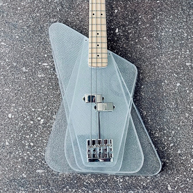 Designed using layers of upcycled plexiglass, a concept bass with heavy tone